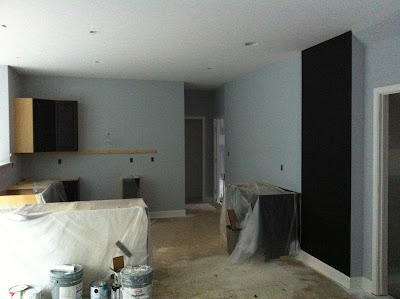 Looking into the kitchen. We still have some cabinets to put up. And yes, that is a chalkboard wall on the right. SCORE.